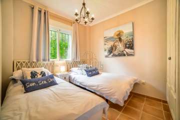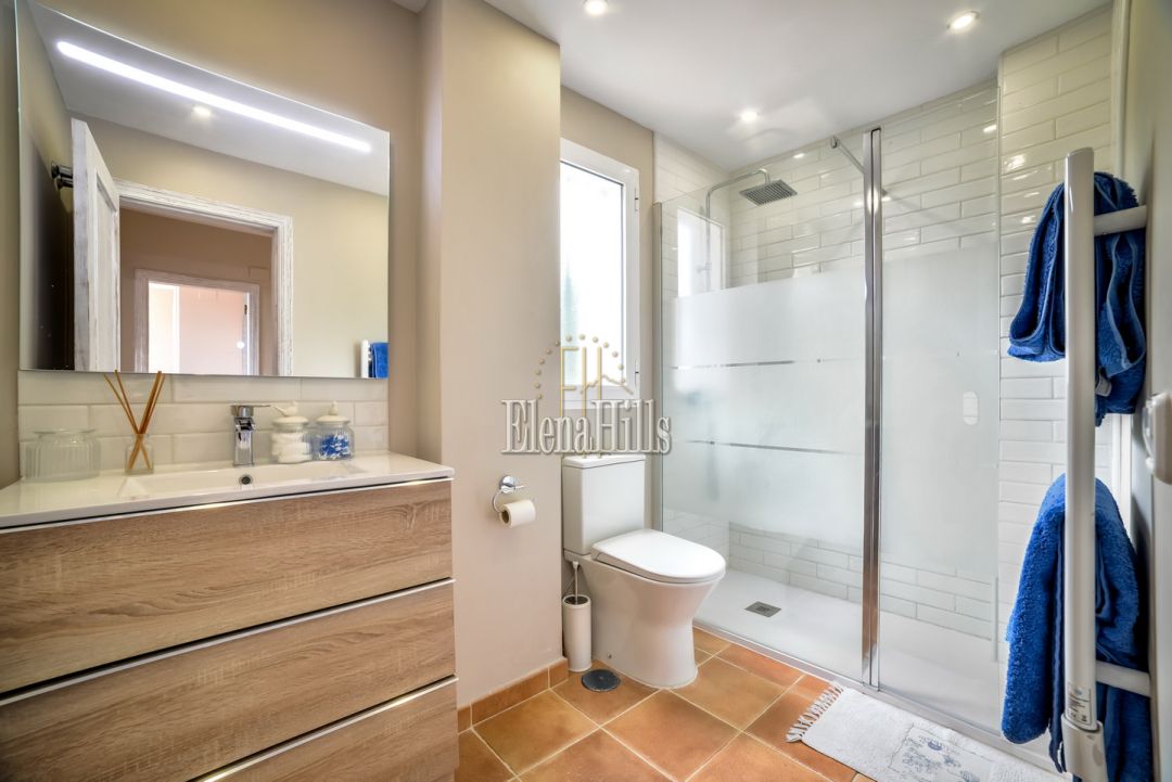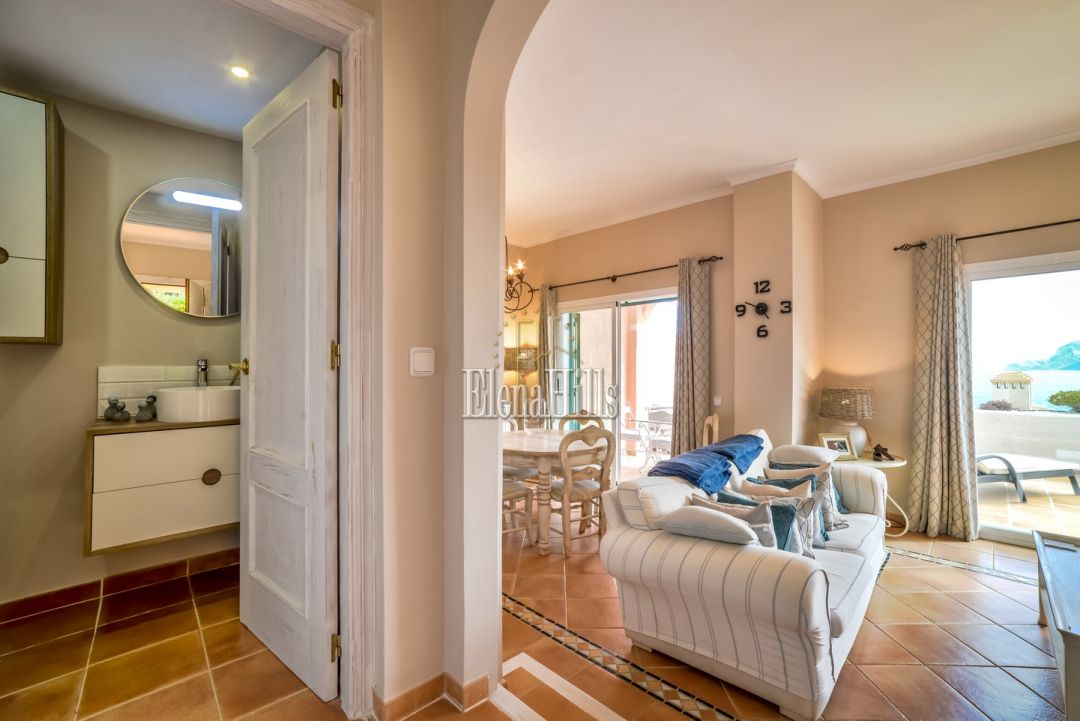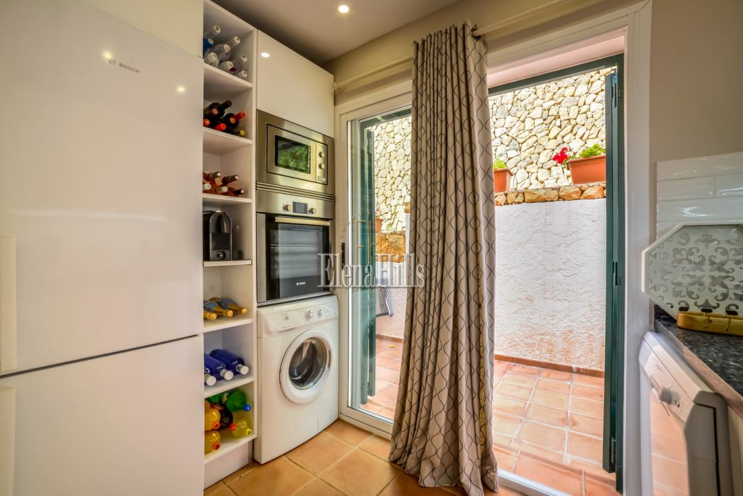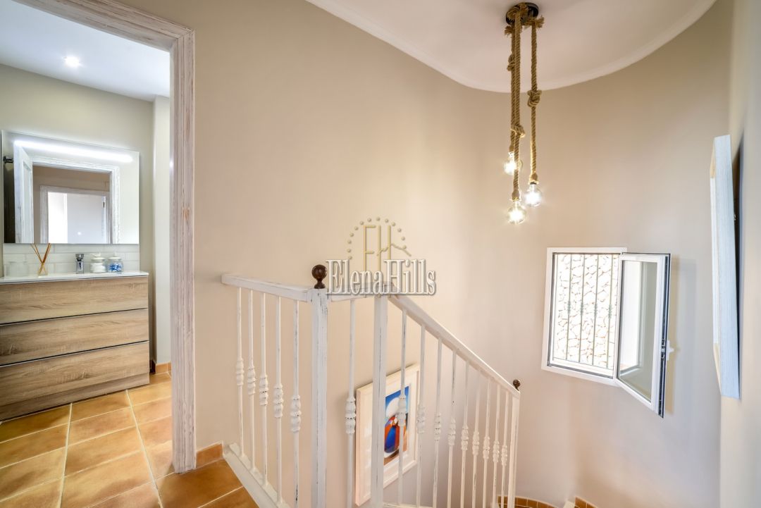 Cozy elegant semi-detached house of 160 m2 for sale - with beautiful panoramic sea views and located in the luxury gated community of Altea Hills (Altea, Alicante). It has been just renovated (2017), it includes 4 bedrooms, 3 bathrooms, 1 guest toilet, a living room of 31 m2, and a fully equipped kitchen of 15 m2 equipped with high end appliances. The living room has direct access to a 106 m2 front terrace with eating and lounge areas, connected to a nicely landscaped back patio with sliding doors to the kitchen. The master bedroom upstairs has bathroom on suite and its own private terrace with breathtaking panoramic sea views of the Bay of Altea and the mountains. There’s a private garage and a guest facility with bedroom and bathroom with separate entrance. This house has an overall feel of comfort and tranquility. An ideal place to spend holidays or to live in an excellent climate of Costa Blanca all year round.