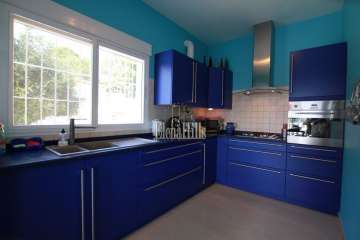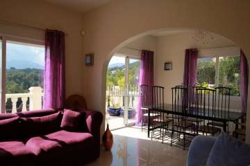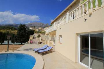 For sale large villa of 300m2 on a sunny 1,000m2 flat plot with large garden, pool, barbecue and lounge area. It is distributed in two independent floors, which becomes a very interesting property to receive guests, coexistence of two families or as a seasonal rental accommodation with high profitability. The upper floor consists of a 50m2 living room, 22m2 kitchen, two bedrooms, two bathrooms and a 40m2 terrace with panoramic views of the mountains and forest. The ground floor consists of 50m2 of living room with open kitchen, 3 double bedrooms and two bathrooms. This house has capacity to park up to 5 cars. It has central heating by diesel radiators, air conditioning hot / cold, double glazed windows and alarm. It is located less than 1 km from the picturesque village of altea la vella with many services such as restaurants, shops, supermarkets, greengrocers, bakery, banks, pharmacies, etc. An ideal property for the whole year and get rental income, contact us to visit.