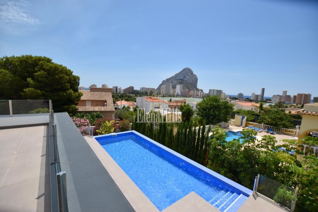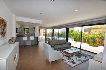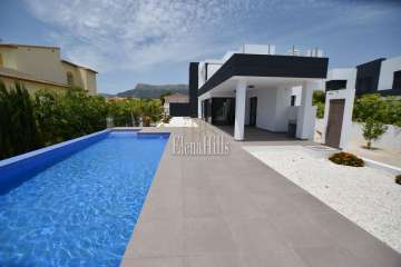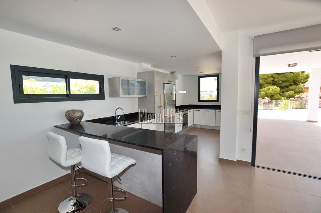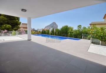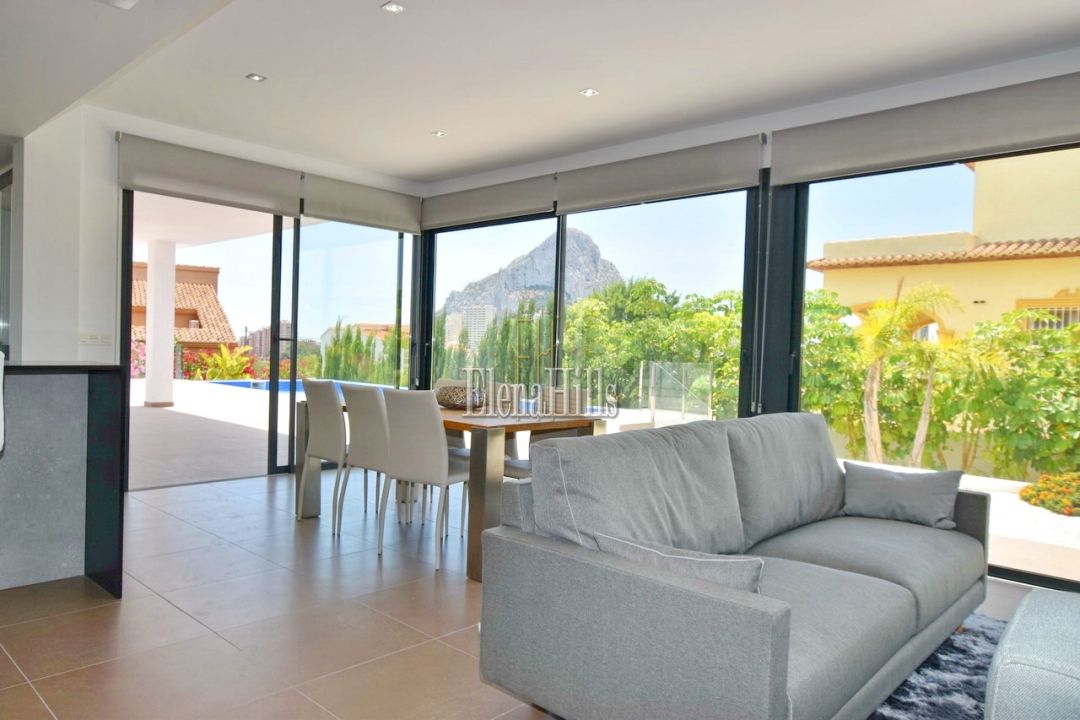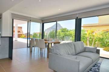 This villa is located in Calpe with stunning sea and salt lake views that Calpe is famous for. The villa consists of four bedrooms, three of them are en-suite, a large and bright living room with ceiling height windows allowing in the sunlight during most of the day. There is a luxury American style kitchen with high quality appliances, a dining room and a private 10 x4 m swimming pool. The property has air conditioning installed in all of the bedrooms as well as in the living room, heated floors, a private garage and additional parking space. The property is newly built and ready to move in. It is situated on a flat land plot and in a convenient location, just a few steps away from all local amenities and the beach.