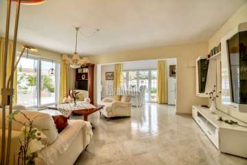 Grande villa à Calpe, prochain de tous les supermarchés et à 5 minutes de la plage. Avec une superficie de 440m2 construite, Cette villa est sur deux étages, avec un appartement à chaque étage, connecté par un escalier intérieur, mais aussi avec des propres entrées. Au rez de chaussée est le garage et appartement avec 2 chambres, une salle de bains, un service, un salon-salle à manger, cuisine et four à bois. L'appartement à l'étage supérieur il y a 3 chambres, deux salles de bains, agréable et spacieuse salle de séjour et une cuisine entièrement équipée avec accès à la terrasse et piscine. Tout est très bien entretenu, même très facile d'entretien de jardin avec des arbres fruitiers et des puits d'eau. Parking pour 4 ou 5 voitures.