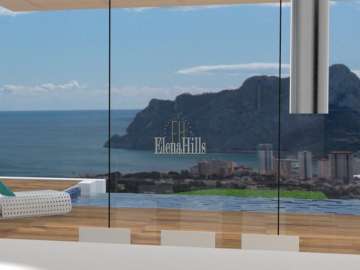 Stunning newly built villa in Altea Hills with magnificent panoramic sea views. The villa is situated in a stunning private urbanization of Altea Hills with 24 hour security. This urbanization is considered the most exclusive of the Costa Blanca. The house is divided into 3 levels; elevator cabin has transparent glass, two heated swimming pools (one outdoor, one indoor), three terraces, garage for three cars, ´smart home´ and under floor heating. The ground floor has 1 bedroom, SPA center with indoor heated pool, sauna, contrast shower, billiard room, fitness room with kitchen and barbecue. First floor has 3 bedrooms, one en suite (bedroom, closet, bathroom with Jacuzzi). On the second floor are distributed: kitchen, living room, living room with fireplace, large terrace and heated outdoor pool. The house is decorated and furnished to a project individually designed in style ´Fendi´. There is also another floor of 220 square meters which can be used to your liking as it has a separate entrance. There is a project that allows this floor: 3 bedrooms, 3 bathrooms, a home theater room, a lounge bar and wine cellar.