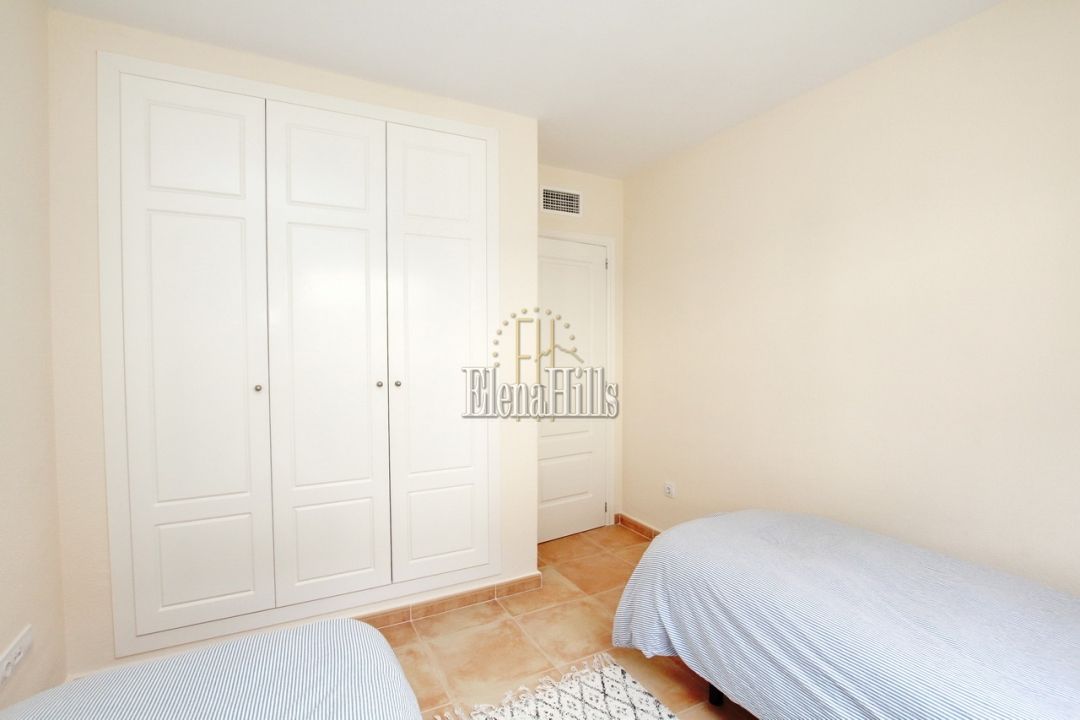 Cozy holiday let apartment with amazing panoramic seaviews in a closed residential complex in a quiet and prestigious living zone of Altea Hills. This apartment has 2 bedrooms, 1 en suite bathroom plus 1 additional bathroom, an independent kitchen, a laundry room, a spacious living and dining area with an exit to a covered terrace that has amazing views. There’s central heating/air-conditioning installed, a chimney, a covered garage space, WiFi. The building has an elevator and a swimming pool.