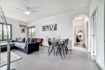 Large villa in Calpe, close to all supermarkets and 5 minutes distance from the beach. With an area of 440m2 built, this villa is on two floors, with an apartment on each floor, connected by an inside staircase but also with individual entries. On the ground floor is the garage and apartment with 2 bedrooms, a bathroom, a service, a living-dining room, kitchen and wood oven. The apartment on the upper floor has 3 bedrooms, two bathrooms, one en suite, nice and spacious living room and a fully equipped kitchen with access to the terrace and pool kitchen. Everything is very well maintained, even very easy maintenance garden with some fruit trees and water well. Parking place for 4 or 5 cars.